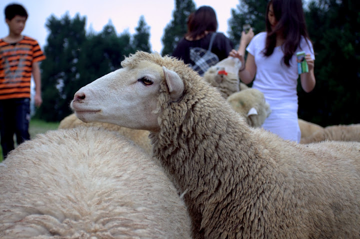 這張小羊實在太萌太可愛了 7/24剛好是青青草原開放羊群恢復剪毛秀的第一天 所以我們下午去的時候滿滿的都是人 人比羊多 而且中間剪毛秀下起超大雨 我跑回車上拿傘 所以也沒看到啊~~~ 雖然很久前第一次去看過了 而且都慢慢在飄雨了 也沒大太陽和藍天 少了點味道 就隨手亂拍了 綠油油的草地 超像過年吃的麻荖 硬是要騙羊走到鏡頭前跟我合照 小湘湘拍這隻羊超級雷鬼的好酷 還是小羊比較可愛...